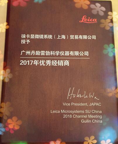 2018年1月26日,作為徠卡公司廣東省醫(yī)療及公共事業(yè)的簽約代理,廣州丹勵(lì)雷勃科學(xué)儀器有限公司(丹利集團(tuán)旗下子公司)參加了徠卡2018年度經(jīng)銷商大會(huì)暨答謝宴。2017年度,廣州丹勵(lì)雷勃科學(xué)儀器有限公司共計(jì)完成徠卡訂貨量130.6萬美金(僅寬場(chǎng)顯微鏡部分),YOY同比增長(zhǎng)131%,喜獲徠卡2017年度優(yōu)秀經(jīng)銷商大獎(jiǎng)!