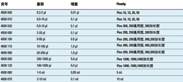 0.2-2μl, 0.5-10μl, 2-20μl,